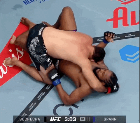 Buchecha is in top half. Spann posts on his hip and swims his right arm across under Buchecha’s cross face to enter octopus guard. Buchecha swings a punch but Spann is already building height. Spann turtles. Buchecha tries to spin to the back. Buchecha tries to throw his left leg over and insert it as a far hook but there’s no weight on Spann so he just stands up and runs to the fence as Buchecha falls off.