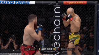 Merab jabs and shoots. Aldo gets an under hook and turns his hips so he can widen his stance. Aldo pushes on Merab’s grip and smacks him with his left hand. When Merab tries to go back and pick up a single Aldo pushes Merab’s head and hops away to relative safety.